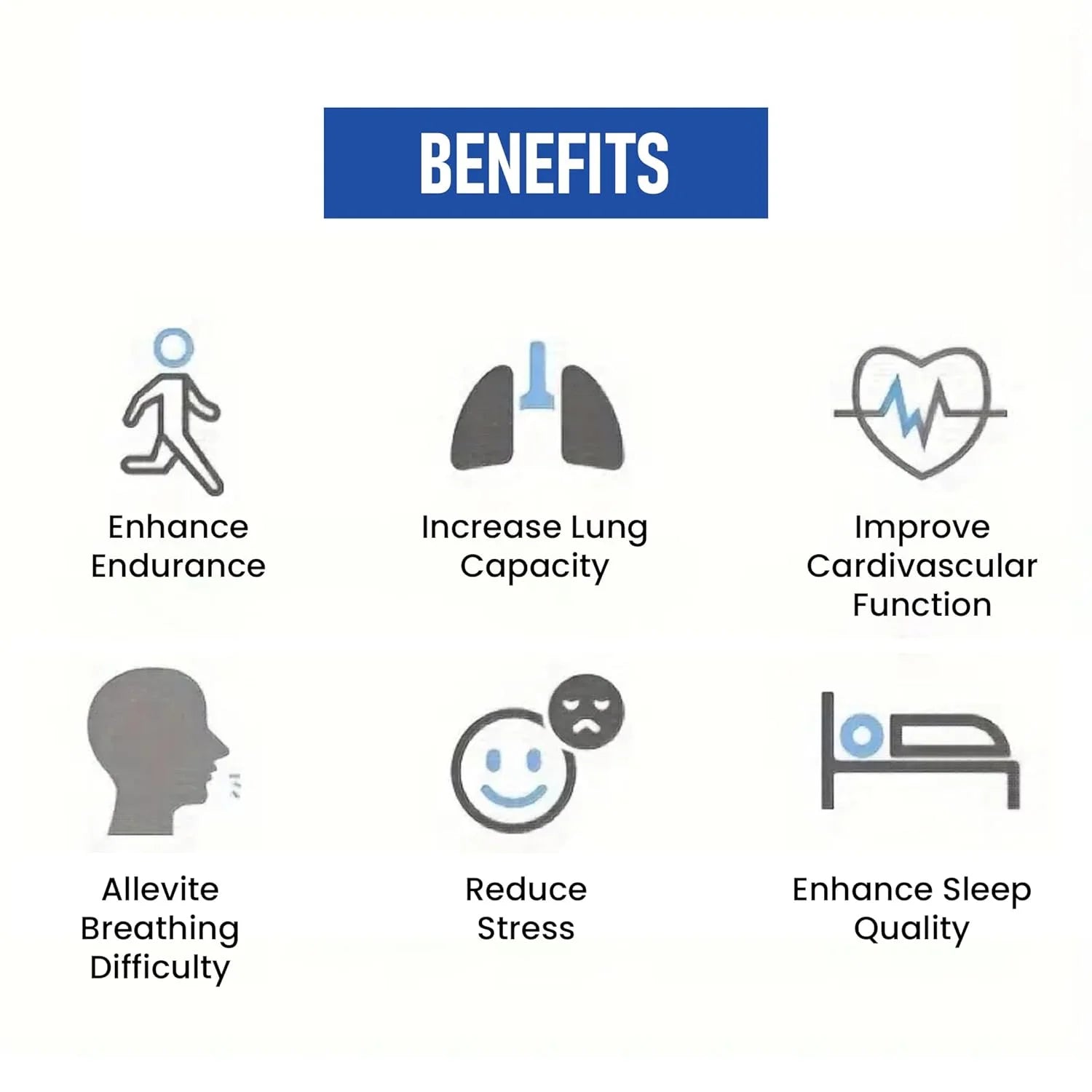 The breathing trainer focuses on deep inhalation and controlled exhalation, training your lungs to work more efficiently. Increased lung capacity means better endurance, improved athletic performance, and better overall respiratory health.